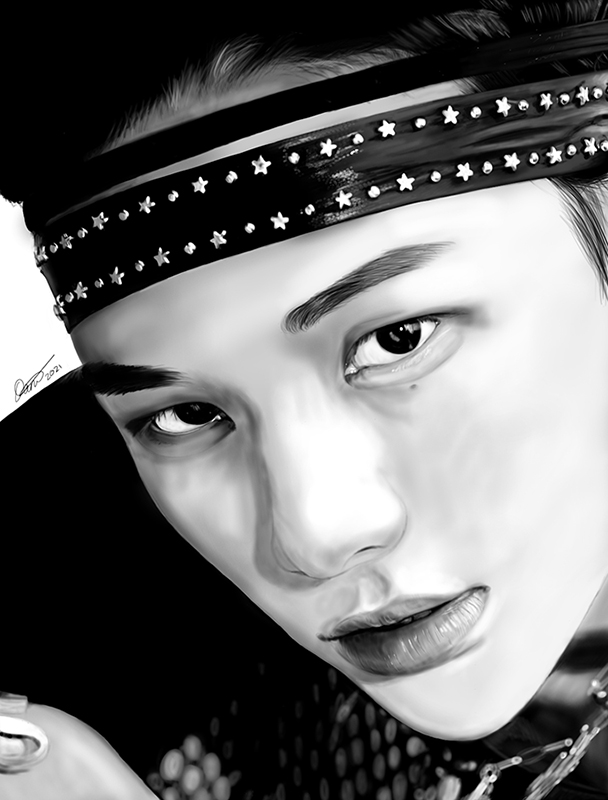 Here’s another photo from the NOEASY photoshoot. There’s so many more I wanna draw but I have to be selective now. There’s always so many photos I wanna draw I’d need at least 4 lifetimes to do them all haha. Anyway, here have Hyunjin. I love drawing him. He’s just so pretty and I seem to be drawing him a lot. He’s not even my bias (he’s my bias wrecker) but I seem to draw him the most haha. He’s just so beautiful…I can’t stop.